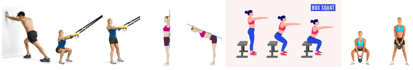 - Box squat (squat in cui l’intervallo di movimento termina toccando una panca con le natiche)